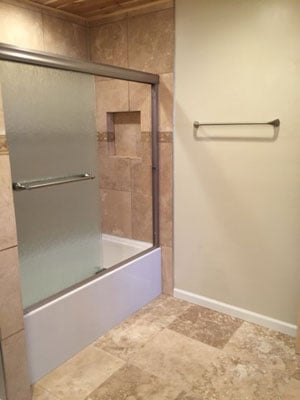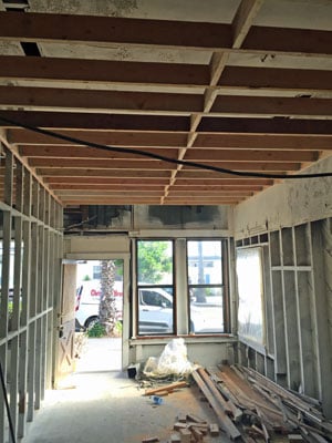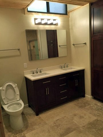 This loss was a fire that started in one of the two bedrooms. There was a fair amount of fire damage and a significant amount of smoke damage. As a result the entire unit was demoed down to the studs, thoroughly cleaned and treated for smoke damage, old lumber was then sealed before any repairs began. Once the clean up was complete we met Statefarm insurance at the loss to begin working on the rebuild phase. The repairs for this included new electrical throughout due to code upgrade and fire damage, we raised the ceiling height to 9ft, new HVAC system, custom Oak cabinets, upgraded bathroom tile and vanity and we installed cedal paneling on all ceilings and most walls.