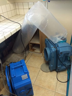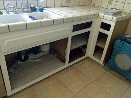This loss was due to a leak under the kitchen sink, which affected the walls and cabinets. The home was built in 1988, so we didn’t need to test for asbestos. There was visible mold growth, so we removed the affected materials and disinfected the kitchen to prepare for repairs. We did the repairs and the clients were super happy with how the job ran so smoothly and was done in a timely manner, as the home was in Escrow. In the end, there was no more mold in the home and it sold, which made the realtor very happy as well!