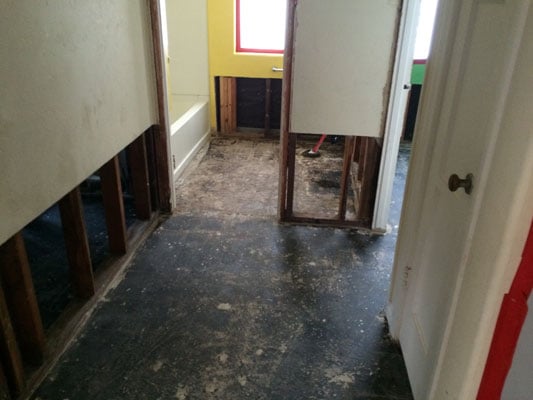 We were called out to this loss because of a sewage back up in the bathroom of a rental home. Once a crew was able to arrive on site we found damage in two bedrooms, the bathroom, hallway and living room. We were able to remove all the carpet and flooring that was affected as well as set minimal equipment so the college students were still able to reside in the home until the end of the week, beginning of spring break. Once the students had left for their break we were able to pack out the contents, allowing us to begin abatement and finish the dry out work needed. When the water mitigation was finished we set up a meeting with the owners Safeco Insurance adjuster to put together a scope of work for the repairs needed in the home. We had a short time frame due to the return of the tenants but were able to meet the needs of the homeowner with new paint, flooring & vanity. Repairs were able to be completed and the students were able to move in on time, resulting with a very satisfied homeowner and happy tenants.