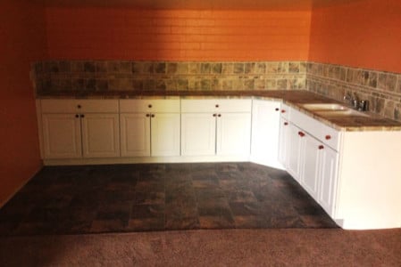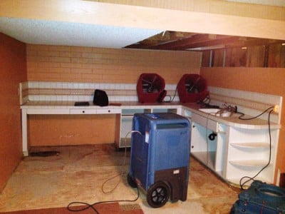 As a result of the loss, a majority of the cabinets were removed, drywall 2 – 4 ft tall cut out and some tile was removed.