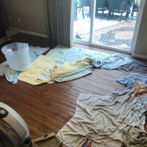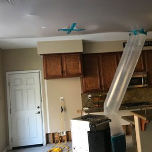 Toilet overflow in the upstairs bathroom and leak through the ceiling pouring into the kitchen. We did the emergency work needed and took out everything that was damaged. We placed our equipment to help the drying process. Once everything was dry, our repair team came out and replaced the cabinets, flooring and drywall. After painting the walls of the effected areas, our job was finished and it looked as though nothing had ever happened.