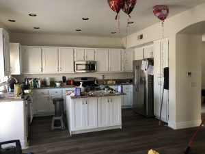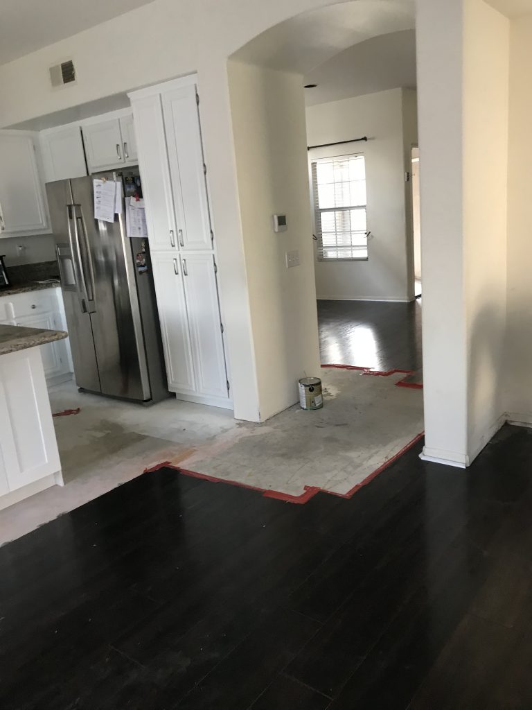 The damage in this Chula Vista home was caused by a pipe leak in the kitchen that made its way into the living room space. Water traveled from the sink and dishwasher area causing damage to cabinets, drywall & flooring. All these areas had to be removed to perform the dry out. As flooring was being removed in the kitchen, our Mitigation Team discovered mold. In order for the remediation to be performed properly, our Contents Team was called in to pack out all the larger items for safe storage. Work was continued an and completed without issue. Our Repairs Team was able to install flooring, cabinets and hang drywall as scheduled and get the owners back into their beautiful residence.