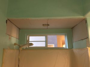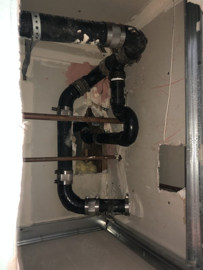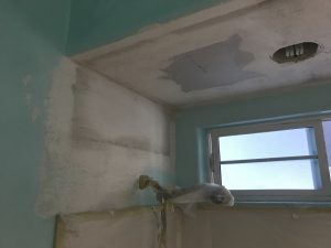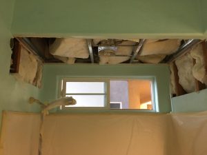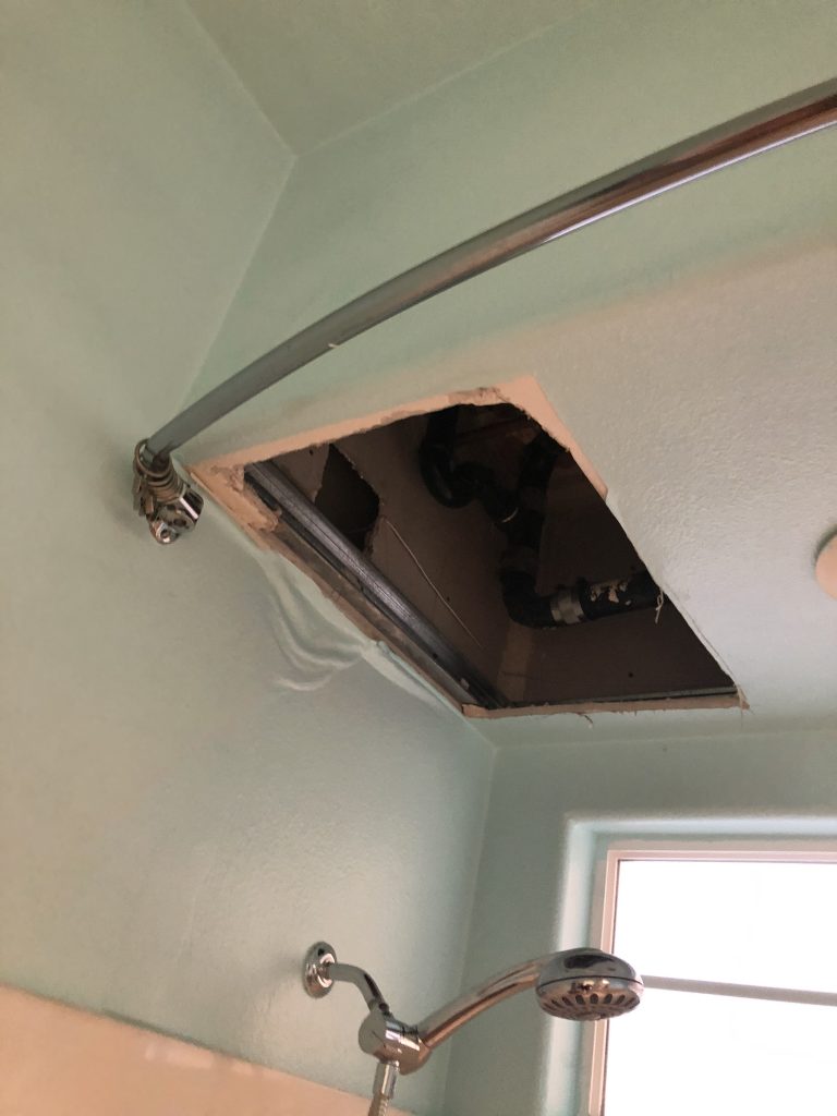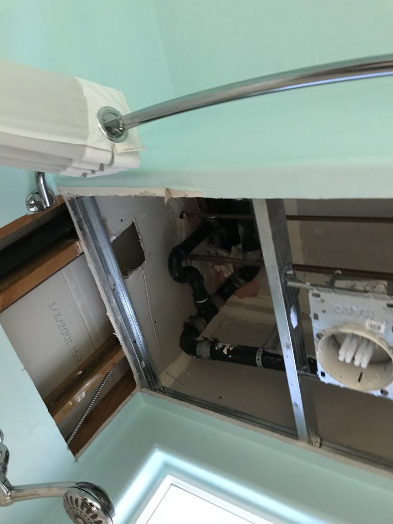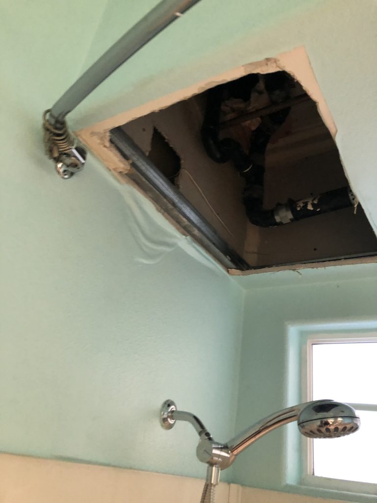 Water Damage had traveled from a pipe leak in the upstairs neighboring unit to the residence below. Our Mitigation Crew had to open walls in the bathroom to remove wet drywall and insulation to sanitize. Drying equipment was strategically set up and left to run for a few days. The team would be monitoring throughout the process to measure moisture levels and ensure optimal drying time. Once the area was dried out properly, our Repairs Team was able to hang drywall, texture and paint.