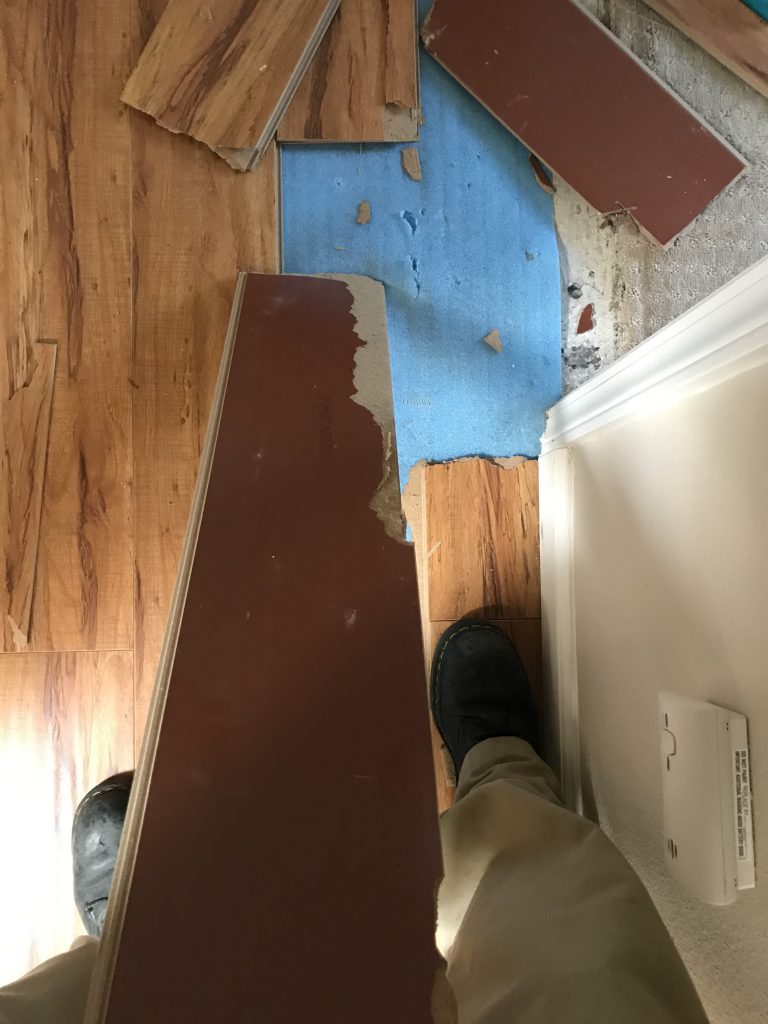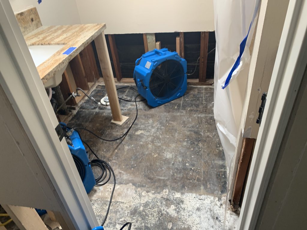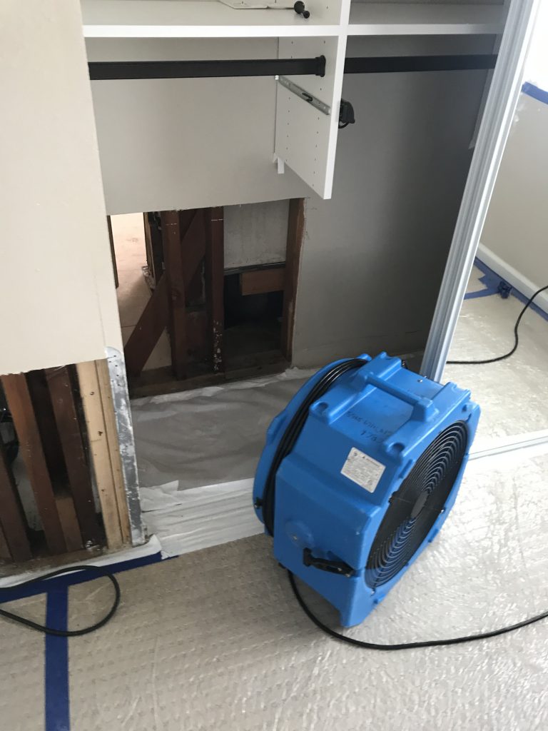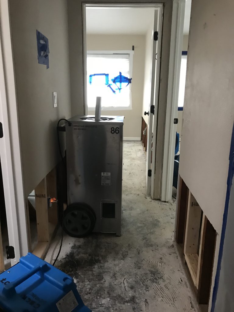 The Water Damage in this home was caused by a toilet overflow. This immediately affected the carpet & laminate flooring in the bathroom and hallway. The damage extended to the entry, two bedrooms, and a closet. Our Water Damage Technicians had to remove the laminate flooring, tile, and carpet to perform the mitigation and sanitation. Due to the extent of damage, our Pack Out Crew came in to pack up furniture and belongings in order to have the space to work & properly dry the affected areas of the home. We packed up some larger items to store in our warehouse until the home was back to normal. We also shifted some items into the non-affected parts of the home so our customers could still have access during the project. After our Repair team hung new drywall, painted and installed new flooring, we returned the items back to the home and placed them accordingly.