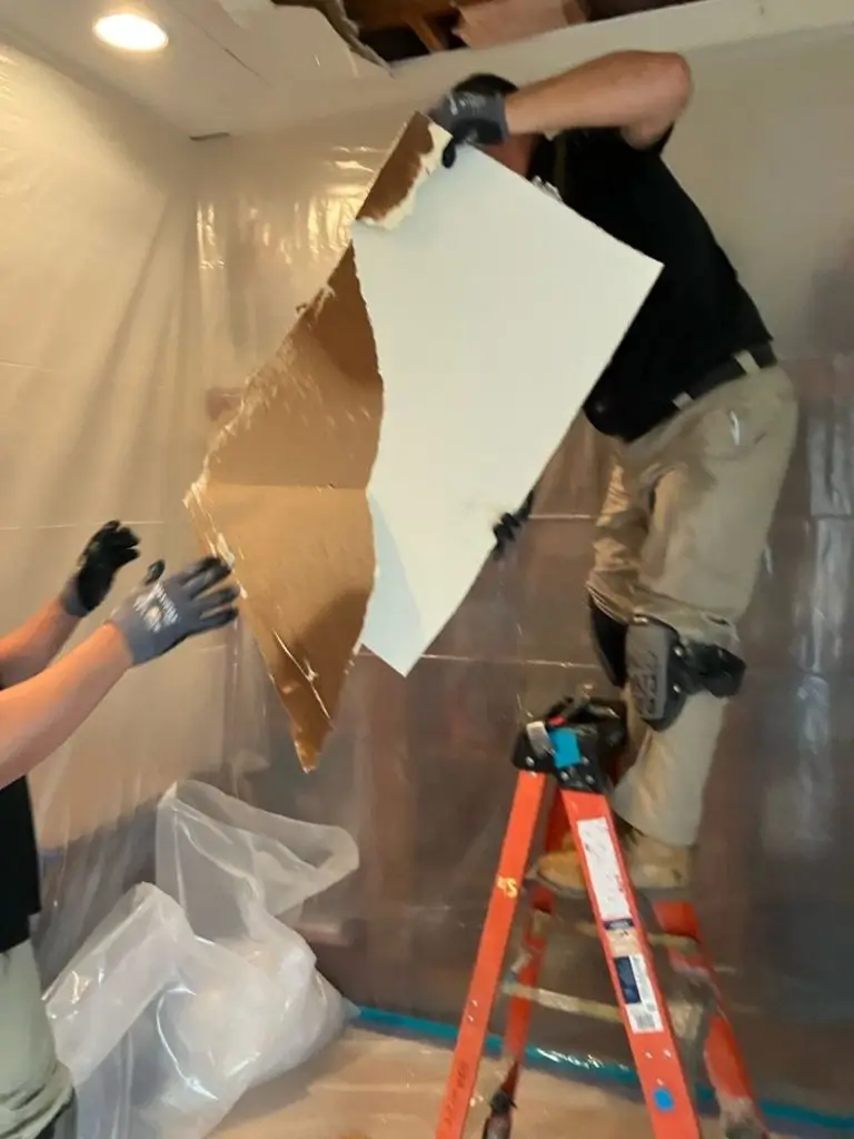 The homeowner came home to water bubbles in her sink from the fire sprinklers leaking. we removed all of the wet ceiling and made sure to dry it out completely with are dehumidifier and air movers, once it was all dry we started the repairing proses.