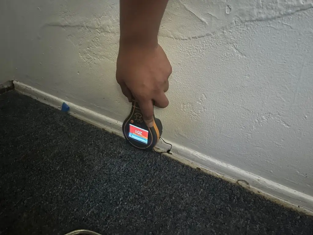 the outside water heater line broke and it affected the bathroom, hallway, bedroom. the fists thing we did was removed all of the wet drywall in the wet areas then we cleaned and sanitized everything. after all of that was done then we set up all of are dehumidifiers for the drying prosses to begin