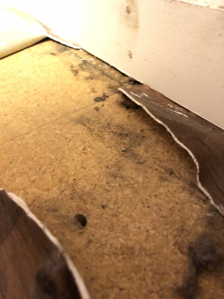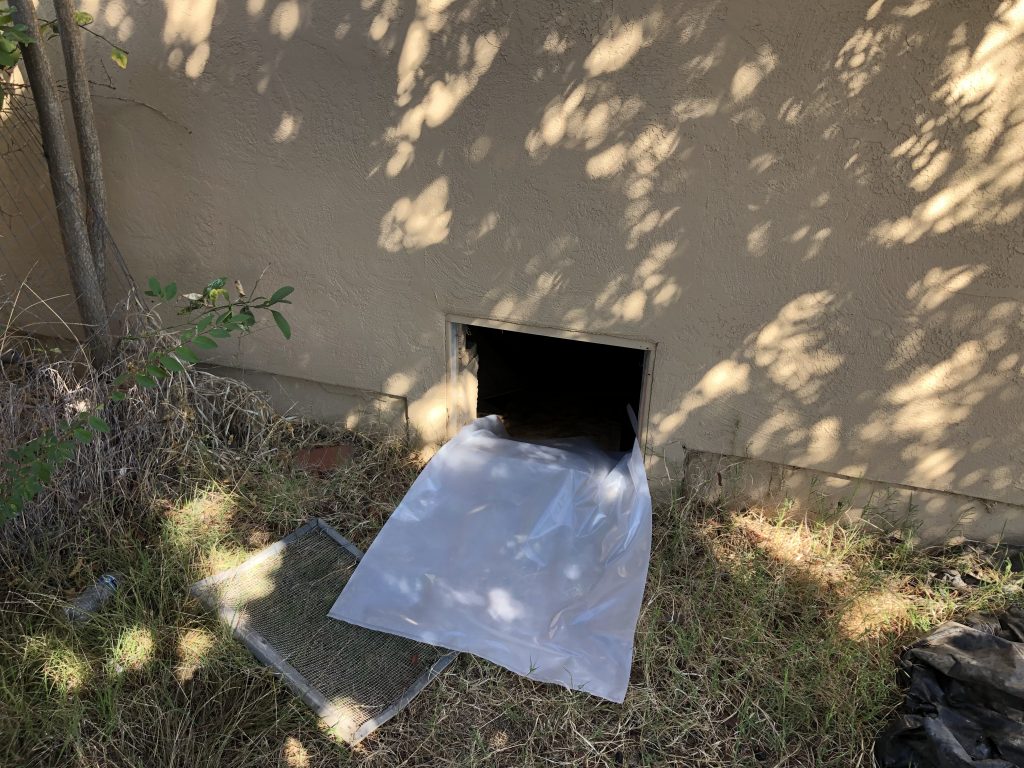 A hot water pipe leak occurred in the crawlspace underneath this Linda Vista home causing both water and mold damage to throughout the structure. The water had caused heavy mold growth on the crawlspace framing and under three rooms of the home. After testing came back positive for Asbestos, abatement took place in the bathroom to remove walls and flooring. The home also needed the floors in all three bedrooms to be removed in order to remediate the mold damage. Once all of the demolition was completed and areas were dry, our Repair Team came in to hang new drywall, paint, and install new flooring. Leaving our customers finally feeling back to normal!