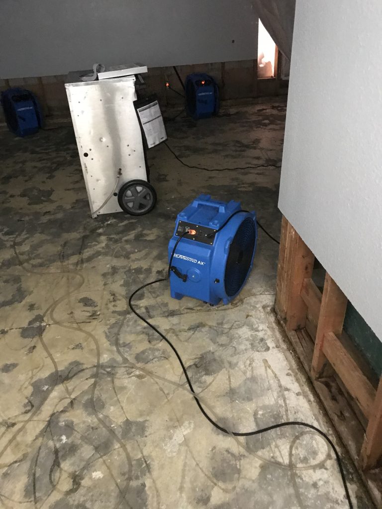 There was 6 inches of standing water in the family room, resulting of a landscape irrigation pipe break under the house. The water then came through the wall and flooded the family room, affecting the flooring & drywall. A Christian Brothers extracted all the water. Our certified technicians cut the damage drywall and took out the carpet and pad. They sanitized the affected area and set the proper drying equipment. The Christian Brothers repair team came out and installed the drywall, painted and put in new carpet.